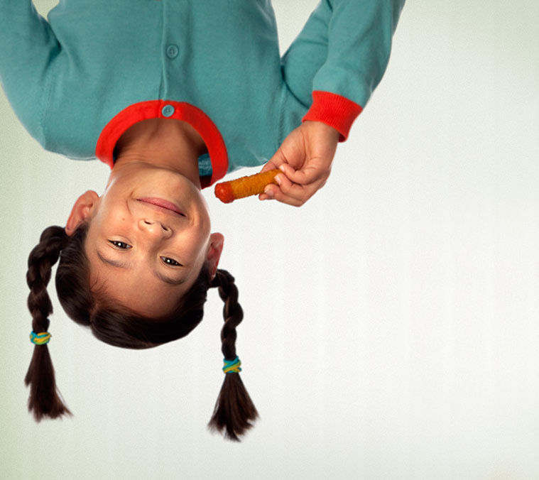 This is one of several children photographed for a national ad campaign where the background was photographed separately and assembled in post. Her right eye was opened, she was given a shorter depth-of-field, and the exposure and color were adjusted.